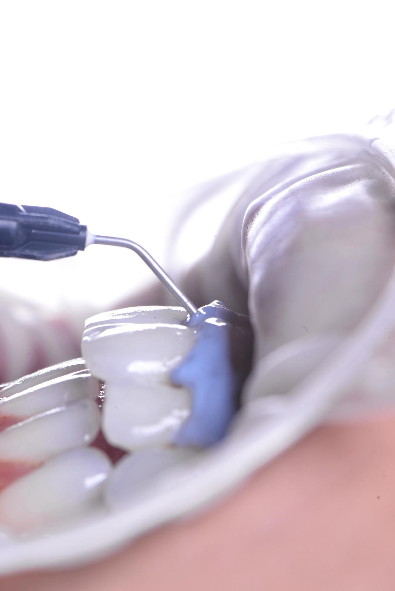 Figura 3: Aplicação direta do peróxido de hidrogênio 37,5% (Pola Office+) com a ponta automix, garantindo praticidade e segurança.