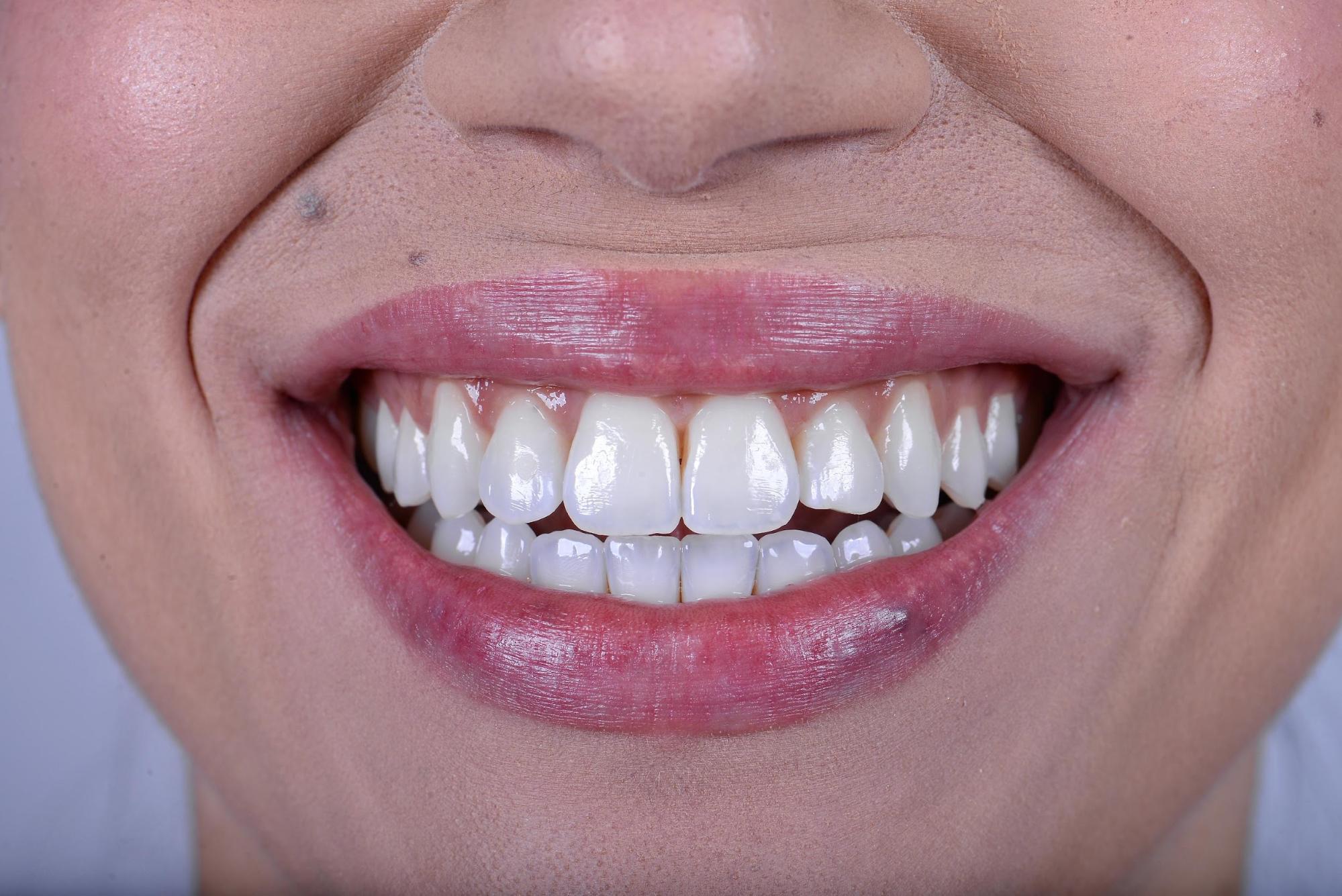 Figura 6: Aspecto ao término do protocolo de clareamento: sorriso com coloração mais clara e uniforme, evidenciando a transição para a escala BL3.