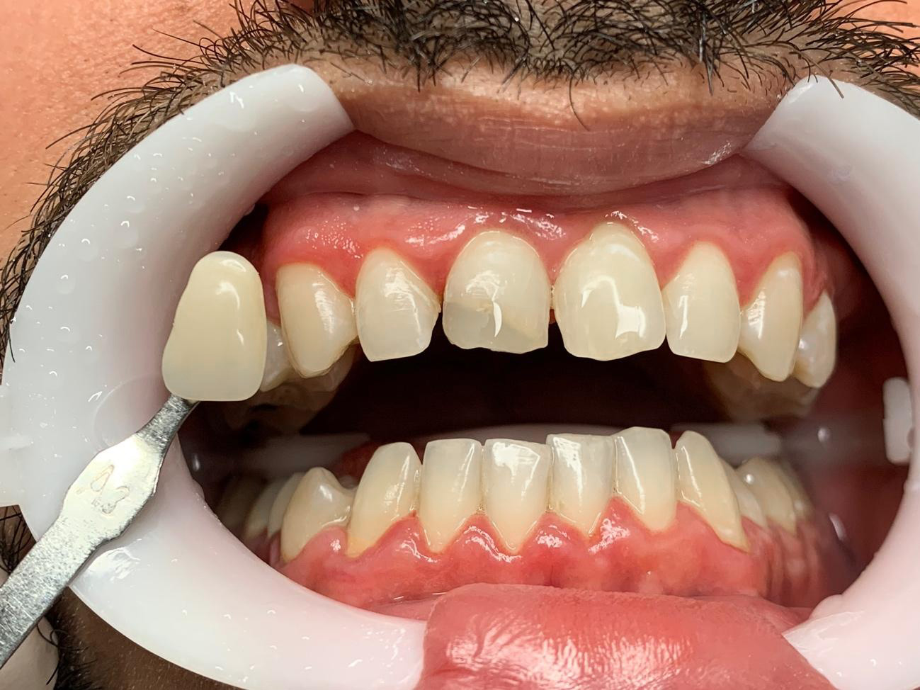 Fig 6: Tomada de cor após primeira sessão. Nota-se o aumento de valor e um contraste maior frente a restauração insatisfatória.